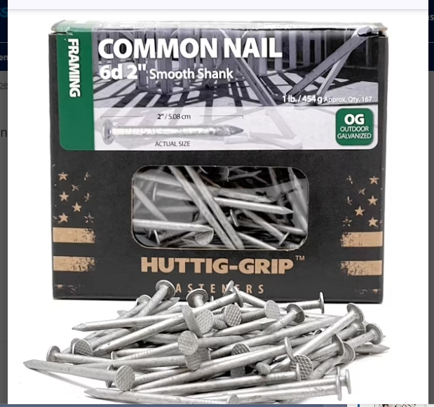 167 pcs Huttig-Grip 2 in Framing Common Nails 6d, Outdoor Galvanized, 1 lb Pack