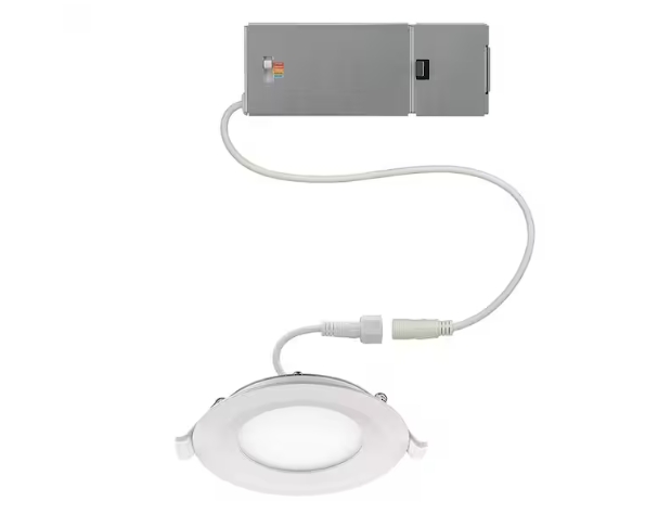 “Commercial Electric 4 in. Adjustable CCT Integrated LED Canless Recessed Light Trim 650 Lumens Kitchen Bathroom Remodel Wet Rated Dimmable”