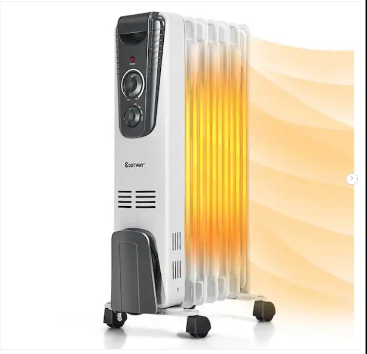 “Costway 1500-Watt Gray Electric Oil Filled Radiator Space Heater 5.7 Fin Thermostat Room Radiant”
