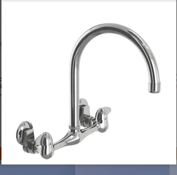 “Glacier Bay Builders Double-Handle Wall Mount Standard Kitchen Faucet in Polished Chrome”