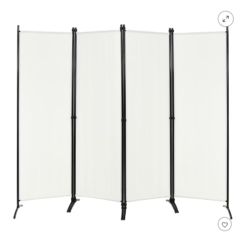 **NEW**Costway 4-Panel 5.6ft Room Divider Folding Fabric Privacy Screen w/Steel Frame White