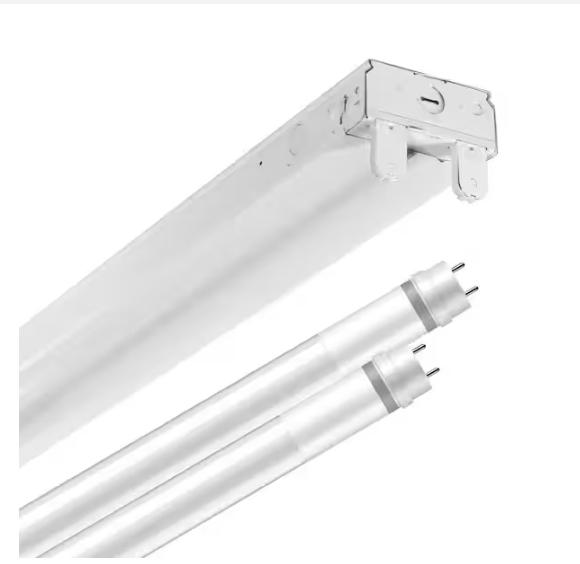 “**USED & DENTED**Metalux SLES 4 ft. 64-Watt Equivalent 2-Lamp Strip Light Luminaire Plus LED T8 Tube Bundle, 4000K, UNV Non-Dim”