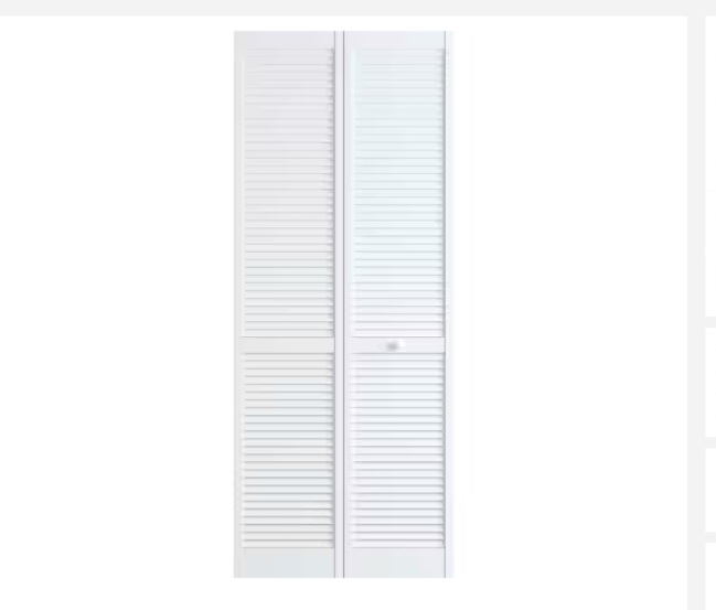 “Veranda 30 in. x 80 in. Louver/Louver Solid Core White Painted Pine Wood Bifold Door with Hardware”